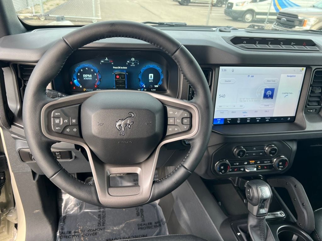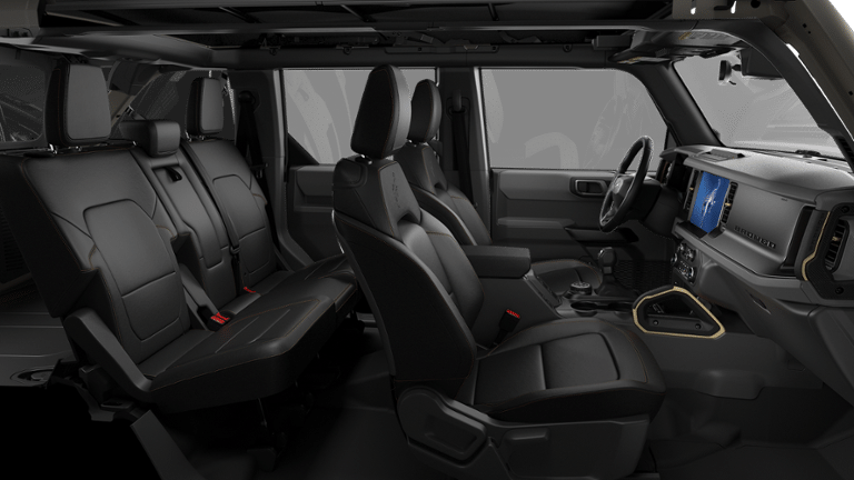 Designed with the adventurer in mind, this Bronco Badlands features a rugged, yet refined exterior. The Beige paint finish gives it a distinctive and sophisticated look, while the high clearance suspension and large all-terrain tires ensure you can conquer any obstacle. Step inside and you'll be greeted by the comfort of Marine Grade Vinyl Heated Bucket Seats, providing both style and durability.