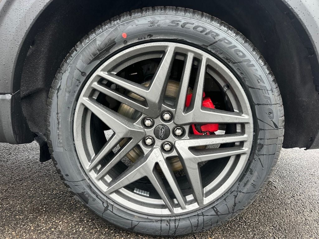 The exterior of this Explorer ST-Line is finished in a sleek Gray color, complemented by the striking 21 Magnetite-Painted Aluminum wheels. Step inside and you'll be greeted by a premium cabin, featuring heated and power-adjustable front seats, a heated steering wheel, and a premium B&O sound system.