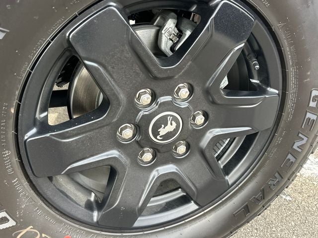 2-Door Intelligent Access w/Lock/Unlock, 4-Wheel Disc Brakes, 7 Speakers, ABS brakes, Air Conditioning, Alloy wheels, AM/FM radio: SiriusXM with 360L, AM/FM Stereo, Ambient Footwell Lighting, Auto High-Beam Headlamps, Auto High-beam Headlights, Auxiliary Switches, Black Diamond Package, BLIS Blind Spot Information System, Brake assist, Carbonized Gray Molded-In-Color Hard Top, Cloth Bucket Seats, Compass, Connected Navigation, Delay-off headlights, Dr & Pass Illuminated Sliding Visor Vanity Mirrors, Driver door bin, Driver vanity mirror, Dual front impact airbags, Dual front side impact airbags, Dual Smart Charging USB Ports, Dual-Zone Electronic Automatic Temperature Control, Electronic Stability Control, Emergency communication system: 911 Assist, Equipment Group 222A Mid Package, Exterior Parking Camera Rear, Front anti-roll bar, Front Bucket Seats, Front Center Armrest, Front reading lights, Front Row Heated Seats, Front wheel independent suspension, Fully automatic headlights, Hard Top Sound Deadening Headliner, Heated door mirrors, Illuminated entry, Integrated roll-over protection, Internet access capable: FordPass Connect, Lane-Keeping System, Leather Shift Knob, LED Fog Lamps, Low tire pressure warning, Occupant sensing airbag, Outside temperature display, Overhead airbag, Overhead console, Panic alarm, Passenger door bin, Passenger vanity mirror, Powder Coated Steel Front & Rear Bumpers, Power door mirrors, Power Outlet - Back Side of Center Floor Console, Power steering, Power windows, Pre-Collision Assist w/Automatic Emergency Braking, Radio data system, Rear Parking Sensors, Rear-View Camera, Rear-Window Defroster & Washer, Remote keyless entry, Rock Rails, Security system, SiriusXM w/360L, Speed control, Split folding rear seat, Steering wheel mounted audio controls, SYNC 4, Tachometer, Telescoping steering wheel, Tilt steering wheel, Traction control, Trip computer, Variably intermittent wipers, Washout Capable Rubberized Flooring, Wheels: 17 Black High Gloss Painted Aluminum, Wheels: 17 Carbonized Gray-Painted Aluminum.