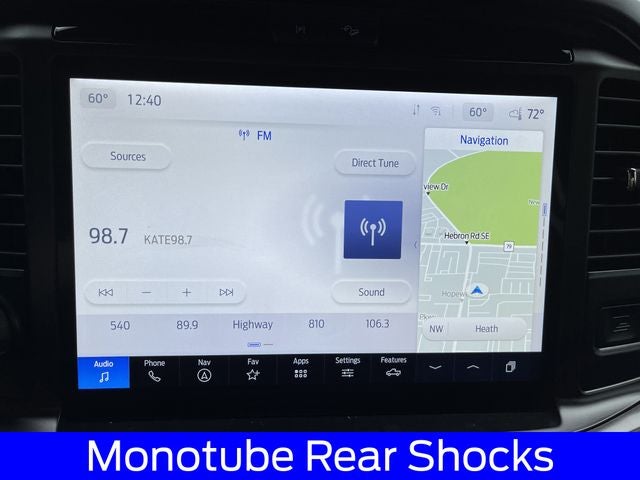 Apple CarPlay/Android Auto, Heated Seats, 360 Degree Camera, 4 Pickup Box Tie-Down Plates, 400W Cab & Bed Outlets, 4x4 FX4 Off-Road Bodyside Decal, 6 Angular Bright Anodized Step Bar, 6 Black Running Boards, Adaptive Cruise Control w/Stop & Go, Auto-Dimming Rear-View Mirror, Bed Utility Package, Black Exterior Badging, Black Grille, Black Painted Grille w/Chrome Center Bar, Body-Color Front & Rear Bumpers, Chrome Door & Tailgate Handles, Chrome Single-Tip Exhaust, Cloth 40/Console/40 Front Seats, Connected Navigation, Console Worksurface, Dark Interior Appliques, Driver State Detection, Dual Exhaust w/Black Tips, Dual-Zone Electronic Automatic Temperature Control, Electronic Locking w/3.55 Axle Ratio, Equipment Group 302A Mid, Evasive Steering Assist, Floor Shifter, Ford Co-Pilot360 Assist 2.0, Front Parking Sensors, FX4 Off-Road Package, Gray Box Side Decal, GVWR: 6,650 lbs Payload Package, Heated Front Seats, Hill Descent Control, Intelligent Access w/Push Button Start, LED Box Lighting, Mobile Office Package, Monotube Rear Shocks, Off-Road Tuned Front Shock Absorbers, Partitioned Lockable Rear Storage, Power Glass Heated Sideview Mirrors, Power-Sliding Rear Window, Remote Start System w/Remote Tailgate Release, Rock Crawl Mode, Tailgate Step w/Tailgate Work Surface, Tough Bed Spray-In Bedliner, Towing Technology, Tray Style Floor Liner w/o Carpet Mats, Wheels: 20 Gloss Black Painted Aluminum, Wrapped Steering Wheel, XLT Black Appearance Package Plus.