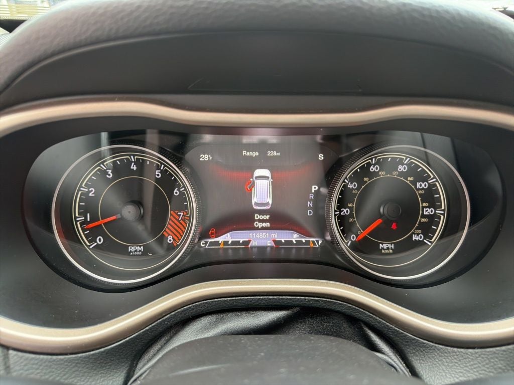 Equipped with Quick Order Package 26G, 1 Year Trial (Registration Required), 4-Wheel Disc Brakes, 5-Year SiriusXM Traffic Service, 5-Year SiriusXM Travel Link Service, 6 Speakers, 8.4 Touch Screen Display, ABS brakes, Active Grille Shutters, Air Conditioning, Alloy wheels, AM/FM radio: SiriusXM, Anti-whiplash front head restraints, Auto-dimming Rear-View mirror, Automatic temperature control, Auxiliary Transmission Oil Cooler, Brake assist, Bumpers: body-color, Compass, Delay-off headlights, Driver door bin, Driver vanity mirror, Dual front impact airbags, Dual front side impact airbags, Electronic Stability Control, Emergency communication system, Engine Oil Cooler, Four wheel independent suspension, Front anti-roll bar, Front Bucket Seats, Front Center Armrest, Front dual zone A/C, Front fog lights, Front reading lights, Fully automatic headlights, Garage door transmitter, GPS Antenna Input, GPS Navigation, Harman Radio Manufacturer, HD Radio, Heated door mirrors, Heated front seats, Heated steering wheel, Illuminated entry, Integrated Voice Command w/Bluetooth®, Knee airbag, Leather Shift Knob, Leather Trimmed Bucket Seats, Low tire pressure warning, No Satellite Coverage w/AK/HI, Normal Duty Suspension, Occupant sensing airbag, Outside temperature display, Overhead airbag, Overhead console, Panic alarm, ParkView Rear Back-Up Camera, Passenger door bin, Passenger vanity mirror, Power door mirrors, Power driver seat, Power Front/Fixed Rear Full Sunroof, Power steering, Power windows, Radio data system, Radio: Uconnect 8.4A AM/FM/SXM/BT, Radio: Uconnect 8.4AN AM/FM/SXM/HD/BT/NAV, Rear anti-roll bar, Rear reading lights, Rear seat center armrest, Rear side impact airbag, Rear window defroster, Rear window wiper, Remote keyless entry, Roof rack: rails only, Security system, SIRIUSXM Satellite Radio, SIRIUSXM Traffic, SiriusXM Travel Link, Speed control, Speed-sensing steering, Split folding rear seat, Spoiler, Steering wheel mounted audio controls, Tachometer, Telescoping steering wheel, Tilt steering wheel, Traction control, Trip computer, Turn signal indicator mirrors, Uconnect Access, Variably intermittent wipers, Voltmeter, and Wheels: 18 x 7 Polished Aluminum.