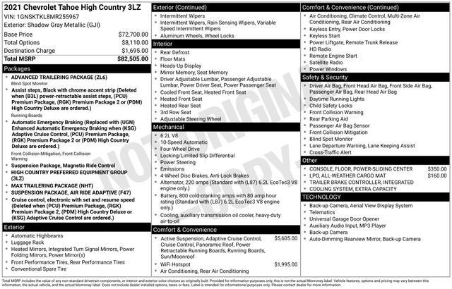 - High Country Preferred Equipment Group includes standard equipment