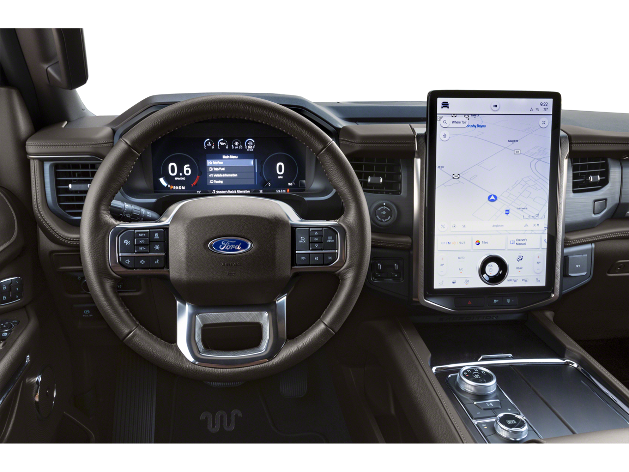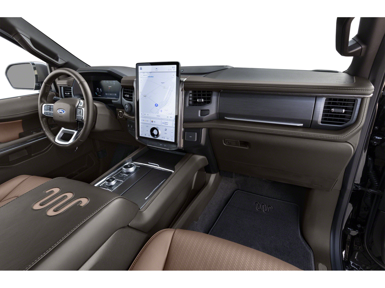 Navigation system: Connected Navigation, 22 Speakers, 3.31 Axle Ratio, 3rd row seats: split-bench, 4-Wheel Disc Brakes, ABS brakes, Active Park Assist 2.0 Removal, Adaptive suspension, Adjustable pedals, Air Conditioning, Alloy wheels, AM/FM radio: SiriusXM with 360L, Auto High-beam Headlights, Auto-dimming door mirrors, Auto-dimming Rear-View mirror, Automatic temperature control, Brake assist, Bumpers: body-color, Compass, Delay-off headlights, Driver door bin, Driver vanity mirror, Dual front impact airbags, Dual front side impact airbags, Dual-Headrest Rear-Seat Entertainment System, Electronic Stability Control, Emergency communication system: SYNC 4 911 Assist, Equipment Group 400A Standard Package, Exterior Parking Camera Rear, Four wheel independent suspension, Front anti-roll bar, Front Bucket Seats, Front Center Armrest, Front dual zone A/C, Front fog lights, Front reading lights, Fully automatic headlights, Garage door transmitter, Genuine wood console insert, Genuine wood dashboard insert, Genuine wood door panel insert, Heated door mirrors, Heated front seats, Heated rear seats, Heated steering wheel, Heated/Ventilated Del Rio Lthr Fr Captain's Chairs, Illuminated entry, Leather steering wheel, Low tire pressure warning, Memory seat, Occupant sensing airbag, Outside temperature display, Overhead airbag, Overhead console, Panic alarm, Passenger door bin, Passenger vanity mirror, Pedal memory, Power door mirrors, Power driver seat, Power Liftgate, Power moonroof, Power passenger seat, Power steering, Power windows, Radio data system, Radio: B&O Unleashed Sound System by Bang & Olufsen, Rain sensing wipers, Rear air conditioning, Rear anti-roll bar, Rear reading lights, Rear window defroster, Rear window wiper, Reclining 3rd row seat, Remote keyless entry, Security system, SiriusXM w/360L, Speed control, Speed-sensing steering, Speed-Sensitive Wipers, Split folding rear seat, Spoiler, Steering wheel memory, Steering wheel mounted audio controls, SYNC 4 w/Enhanced Voice Recognition, Tachometer, Telescoping steering wheel, Tilt steering wheel, Traction control, Trip computer, Turn signal indicator mirrors, Variably intermittent wipers, Ventilated front seats, Voltmeter, Wheels: 22 6-Spoke Polished Aluminum, MOONROOF/SUNROOF, NAVIGATION/GPS, 4WD/AWD/4X4, REAR DVD ENTERTAINMENT, REAR BACKUP CAMERA, Bluetooth®, Hands-Free, Adaptive Cruise Control, Apple CarPlay/Android Auto, 3rd Row Seating, Heated Seats, Air Conditioned Seats, Premium Wheels, Navigation system: Connected Navigation.