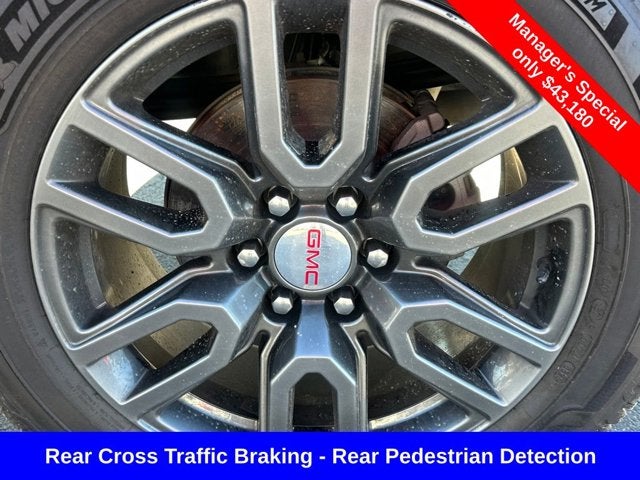 Sierra 1500 AT4, 4D Crew Cab, EcoTec3 6.2L V8, 10-Speed Automatic, 4WD, Onyx Black, Jet Black With Kalahari Accents Leather, 120-Volt Bed Mounted Power Outlet, 120-Volt Instrument Panel Power Outlet, 2 Charge/Data USB Ports Inside Center Console, 2 Type-C Charge-Only Rear USB Ports, 2 USB Ports, 220 Amp Alternator, Adaptive Cruise Control, AT4 Preferred Package, AT4 Premium Package, Auto-Locking Rear Differential, Bed View Camera, Black Chrome Header & Grille Insert Bars, Color-Keyed Carpeting Floor Covering, Compass, Deep-Tinted Glass, Electric Rear-Window Defogger, Electrical Steering Column Lock, Floor-Mounted Center Console, Front Prem Floor Liners w/Removable Carpet Insert, Front Rainsensing Wipers, GMC Connected Access Capable, HD Rear Vision Camera, HD Surround Vision, Heated 2nd Row Outboard Seats, Heated Driver & Front Outboard Passenger Seating, Heated Steering Wheel, Heavy-Duty Air Filter, Hill Descent Control, Hitch Guidance, Hitch Guidance w/Hitch View, In-Vehicle Trailering App, Integrated Trailer Brake Controller, Keyless Open & Start, LED Cargo Area Lighting, Multicolor 15 Diagonal Head-Up Display, Off-Road High Clearance Step (LPO), OnStar & GMC Connected Services Capable, Perimeter Lighting, Power Door Locks, Power Front Passenger Windows w/Express Up/Down, Power Front Windows w/Driver Express Up/Down, Power Rake & Telescoping Steering Column, Power Rear Windows w/Express Down, Power Sliding Rear Window w/Rear Defogger, Preferred Equipment Group 4SB, Premium Bose 7-Speaker Sound System, Push Button Start, Rear Camera Mirror, Rear Cross Traffic Braking, Rear Pedestrian Detection, Rear Prem Floor Liners w/Removable Carpet Insert, Rear Wheelhouse Liners, Red Recovery Hooks, Remote Vehicle Starter System, Sierra Safety Plus Package, SiriusXM w/360L, Spray-On Pickup Bed Liner w/AT4 Logo, Steering Wheel Audio Controls, Technology Package, Theft Deterrent System (Unauthorized Entry), Trailer Camera Provisions, Trailer Side Blind Zone Alert, Trailering Package, Ultrasonic Front & Rear Park Assist, Universal Home Remote, Ventilated Driver & Front Passenger Seats, Wi-Fi Hotspot Capable, Wireless Charging, Wireless Phone Projection.