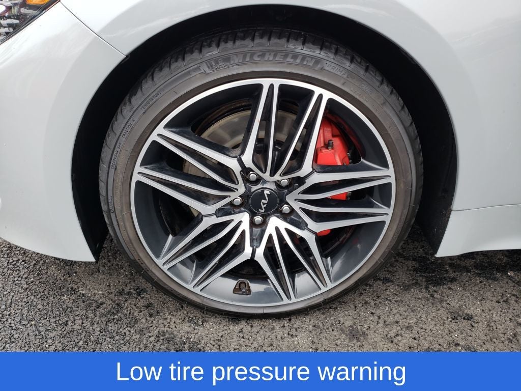 Ceramic Silver 2022 Kia Stinger GT1 AWD 8-Speed Automatic 3.3L V6 DGI Stinger GT1, 4D Sedan, 3.3L V6 DGI, 8-Speed Automatic, AWD, Ceramic Silver, Black Leather, 4-Wheel Disc Brakes, 9 Speakers, ABS brakes, Air Conditioning, Alloy wheels, AM/FM radio: SiriusXM, Anti-whiplash front head restraints, Apple CarPlay & Android Auto, Auto High-beam Headlights, Auto-dimming Rear-View mirror, Automatic temperature control, Brake assist, Bumpers: body-color, Delay-off headlights, Driver door bin, Driver vanity mirror, Dual front impact airbags, Dual front side impact airbags, Electronic Stability Control, Emergency communication system: UVO eServices, Exterior Parking Camera Rear, Four wheel independent suspension, Front anti-roll bar, Front Bucket Seats, Front Center Armrest, Front dual zone A/C, Front reading lights, Fully automatic headlights, harman/kardon® Speakers, Heated door mirrors, Heated Front Bucket Seats, Heated front seats, Heated steering wheel, Illuminated entry, Knee airbag, Leather Seat Trim, Low tire pressure warning, Navigation System, Occupant sensing airbag, Outside temperature display, Overhead airbag, Overhead console, Panic alarm, Passenger door bin, Passenger vanity mirror, Power door mirrors, Power driver seat, Power moonroof, Power passenger seat, Power steering, Power windows, Radio: AM/FM/HD Audio System, Rain sensing wipers, Rear air conditioning, Rear anti-roll bar, Rear reading lights, Rear seat center armrest, Rear window defroster, Red Interior Color Package, Red Leather Seat Trim, Remote keyless entry, Security system, Smart Key w/ Push Button and Remote Start, Speed control, Speed-sensing steering, Speed-Sensitive Wipers, Split folding rear seat, Sport steering wheel, Steering wheel mounted audio controls, Tachometer, Telescoping steering wheel, Tilt steering wheel, Traction control, Trip computer, Turn signal indicator mirrors, Variably intermittent wipers, Wheels: 8.0J x 19 Front/8.5J x 19 Rear Alloy.