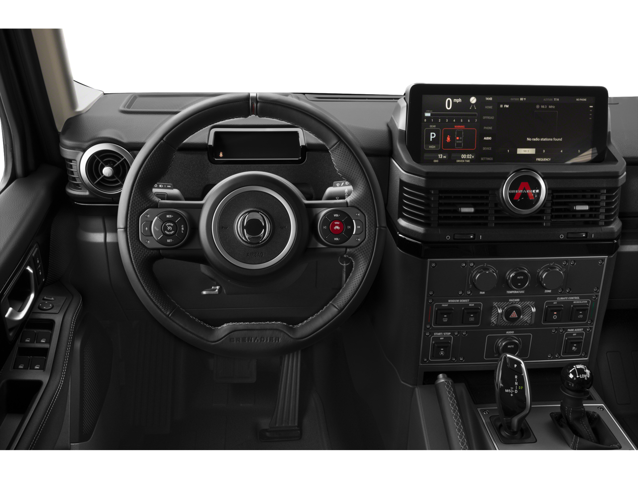 Black 2024 INEOS Grenadier Fieldmaster Edition ABS brakes, Alloy wheels, Compass, Electronic Stability Control, Heated door mirrors, Heated Front Bucket Seats, Heated front seats, Illuminated entry, Leather Seat Trim, Low tire pressure warning, Navigation System, Remote keyless entry, Traction control.