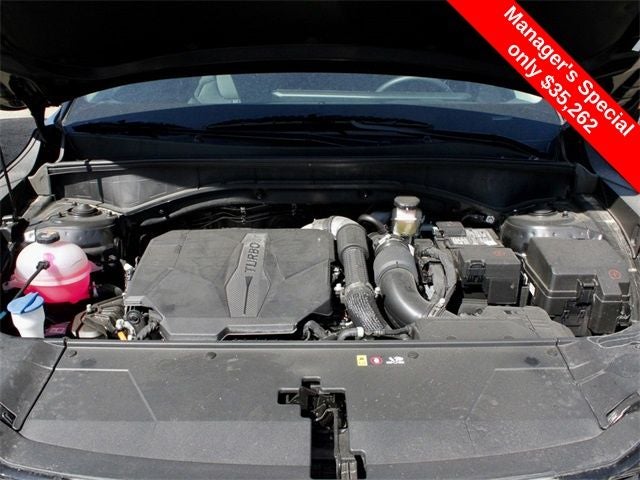 Equipped with AWD, 3.316 Axle Ratio, 3rd row seats: split-bench, 4-Wheel Disc Brakes, 6 Speakers, ABS brakes, Air Conditioning, Alloy wheels, AM/FM radio: SiriusXM, Apple CarPlay & Android Auto, Auto High-beam Headlights, Auto-dimming Rear-View mirror, Automatic temperature control, Brake assist, Bumpers: body-color, Carpeted Floor Mats, Delay-off headlights, Driver door bin, Driver vanity mirror, Dual front impact airbags, Dual front side impact airbags, Electronic Stability Control, Emergency communication system: 911 Connect, Exterior Parking Camera Rear, Four wheel independent suspension, Front anti-roll bar, Front Bucket Seats, Front Center Armrest, Front dual zone A/C, Front fog lights, Front reading lights, Fully automatic headlights, Heated door mirrors, Heated Front Bucket Seats, Heated front seats, Illuminated entry, Knee airbag, Leather Shift Knob, Leather steering wheel, Low tire pressure warning, Navigation System, Occupant sensing airbag, Outside temperature display, Overhead airbag, Overhead console, Panic alarm, Passenger door bin, Passenger vanity mirror, Power door mirrors, Power driver seat, Power Liftgate, Power passenger seat, Power steering, Power windows, Radio data system, Radio: AM/FM Audio System, Rear anti-roll bar, Rear reading lights, Rear side impact airbag, Rear window defroster, Rear window wiper, Remote keyless entry, Security system, Smart Key w/ Push Button and Remote Start, Speed control, Speed-sensing steering, Split folding rear seat, Spoiler, Steering wheel mounted audio controls, SynTex Artificial Leather Seat Trim, Tachometer, Telescoping steering wheel, Tilt steering wheel, Traction control, Trip computer, Turn signal indicator mirrors, Variably intermittent wipers, and Wheels: 8.5J x 20 Gloss Black X-Line Alloy.