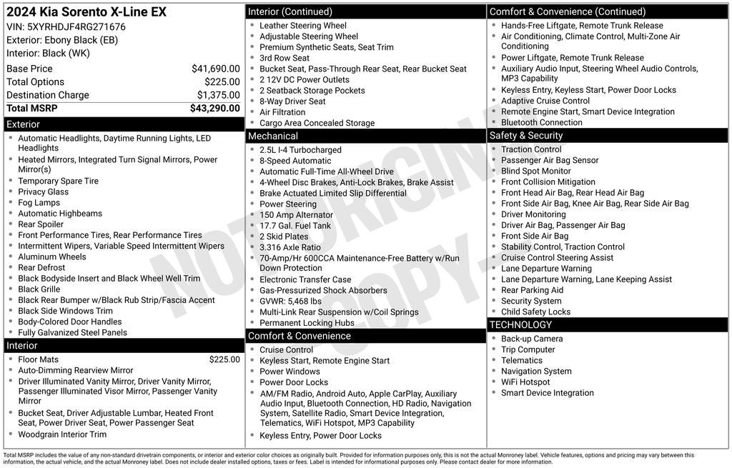 Ebony Black 2024 Kia Sorento X-Line EX AWD.
