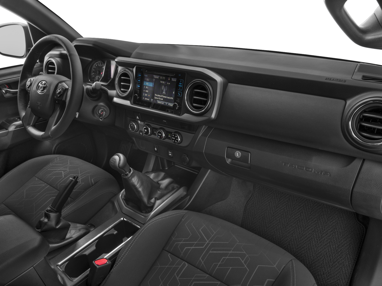 Slip behind the wheel and experience the refined comfort of the Tacoma's interior. Enjoy the convenience of features like the Entune Premium Audio system with navigation, dual-zone climate control, and a power-sliding rear window. The spacious cabin, with its durable fabric upholstery and split-folding rear seat, ensures you and your passengers travel in comfort, no matter the destination.