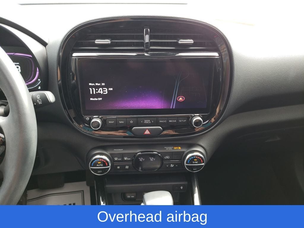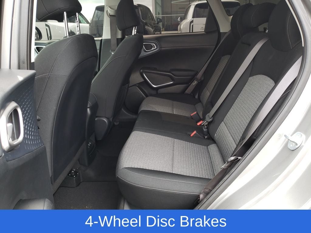 Certified. Steel Gray 2023 Kia Soul EX FWD CVT 2.0L I4 DOHC Soul EX, 4D Hatchback, 2.0L I4 DOHC, CVT, FWD, Steel Gray, Black Cloth, 17 Alloy Wheels, 4-Wheel Disc Brakes, 6 Speakers, ABS brakes, Air Conditioning, Alloy wheels, AM/FM radio: SiriusXM, Apple CarPlay & Android Auto, Auto High-beam Headlights, Automatic temperature control, Brake assist, Bumpers: body-color, Cargo Seatback Up Protection, Carpeted Floor Mats, Compass, Delay-off headlights, Driver door bin, Driver vanity mirror, Dual front impact airbags, Dual front side impact airbags, Electronic Stability Control, Emergency communication system, Exterior Parking Camera Rear, Front anti-roll bar, Front Bucket Seats, Front Center Armrest, Front dual zone A/C, Front reading lights, Front wheel independent suspension, Fully automatic headlights, Heated door mirrors, Heated Front Bucket Seats, Heated front seats, Illuminated entry, Leather Shift Knob, Leather steering wheel, Low tire pressure warning, Navigation System, Occupant sensing airbag, Outside temperature display, Overhead airbag, Overhead console, Panic alarm, Passenger door bin, Passenger vanity mirror, Power door mirrors, Power driver seat, Power moonroof, Power steering, Power windows, Premium Woven & Tricot Cloth Seat Trim, Radio data system, Radio: AM/FM/MP3/HD Audio System, Rear seat center armrest, Rear window defroster, Rear window wiper, Remote keyless entry, Speed control, Speed-sensing steering, Split folding rear seat, Steering wheel mounted audio controls, Tachometer, Telescoping steering wheel, Tilt steering wheel, Traction control, Trip computer, Variably intermittent wipers, Wheel Locks.