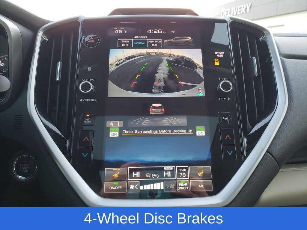 - Radio: Subaru STARLINK 11.6" Multimedia Plus System -inc: AM/FM stereo HD Radio, multi-touch gesture high resolution display screen, voice activated controls, Bluetooth® audio streaming and hands-free phone connectivity w/SMS text messaging connectivity (refer to subaru.com for cell phone compatibility), Near Field Communication (NFC), iPod control capability, SiriusXM All Access radio (4 months free trial/subscription required after), SiriusXM Travel Link (4 months free trial/subscription required after), smartphone integration for Android Auto and Apple CarPlay w/full screen view and wireless connection and STARLINK cloud applications, USB and Over The Air (OTA) audio system update, steering wheel control switches for audio and Bluetooth®, 6 speakers, 3.5mm illuminated auxiliary input jack and illuminated USB A and C input/charge ports
